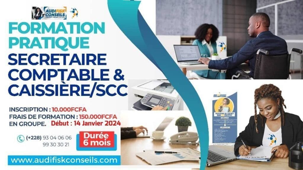 Vue(s): 212 © 06 Mois de formation pratique au métier de Secrétariat Comptabilité Caisse (SCC) Début : 14 Janvier 2025 Objectif : Se former sur la maitrise de toutes les tâches de secrétaire qualifié (la maîtrise du pack Office : Word, Excel, PowerPoint, Publisher,..); Organisation des réunions, rédaction des P.V, rapports, Compte Rendu… Se former sur les qualités et compétences d’une Secrétaire Comptable et/Caissière Se former sur les déclarations Taxes de la fiscalité Togolaise et autres. CONTENU DE LA FORMATION MODULE 1 : Secrétariat bureautique : L’accueil Le téléphone ; Le courrier Le fonctionnement de l’entreprise La prise de notes Internet /recherche L’organisation de réunions L’organisation de voyages professionnels (lettre de mission, ordre de mission…) Dactylographie (Étude et Maitrise du clavier) Classement et gestion des dossiers administratifs MODULE 2 : Microsoft Microsoft Word Microsoft Excel Microsoft PowerPoint Microsoft Publisher MODULE 3 : Étude de la base théorique de la comptabilité Présentation du bilan Présentation du compte de résultat Étude des flux Quelques écritures comptables des opérations courantes Imputations des pièces comptable MODULE 4 : Organisation comptable & Initiation pratique à la comptabilité La Mise en place de la comptabilité selon la nature … Lire la suite de © 06 Mois de formation pratique au métier de Secrétariat Comptabilité Caisse (SCC)
