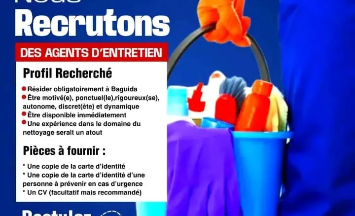 OFFRE DE RECRUTEMENT : AGENTS D’ENTRETIEN – BAGUIDA