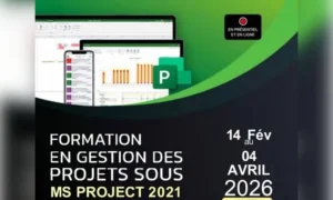 Vue(s): 180 FORMATION EN GESTION DES PROJETS SOUS MS PROJECT 2021 Début de la formation 14 février 2026 EN PRÉSENTIEL ET EN LIGNE Le Centre de formation Professionnelle SENIORES-FORMATION, Arrêté N° 2024/019/ MEPST/MET/CAB/SE-CCCS organise du 14 février au 04 avril 2026, sa quatrième session de formation pratique en Gestion des projets sous MS Project 2021. Contexte et justification La réussite d’un projet de développement ou d’un projet commercial dépend de la méthode de planification adoptée. Cette dernière est une étape indispensable et cruciale dans la trajectoire de gestion du projet. Elle consiste à définir et à ordonnancer l’ensemble des tâches à réaliser afin d’atteindre les objectifs attendus, et d’estimer leurs délais de réalisation ainsi que les charges et les coûts à prévoir. De ce fait, une formation en gestion de projet avec le logiciel MS Project est utile à tout professionnel désirant de renforcer ses capacités ou d’apprendre de nouvelles techniques pour planifier des tâches, concevoir un budget, diriger des équipes et réaliser toutes les autres actions associées au pilotage d’un projet. Pour vous permettre d’acquérir ces connaissances, le Centre de formation professionnelle SENIORÈS-FORMATION vous propose sa seconde session de formation en gestion de projet sous MS Project 2021, étalée … Lire la suite de Formation en gestion des projets sous MS PROJECT 2021