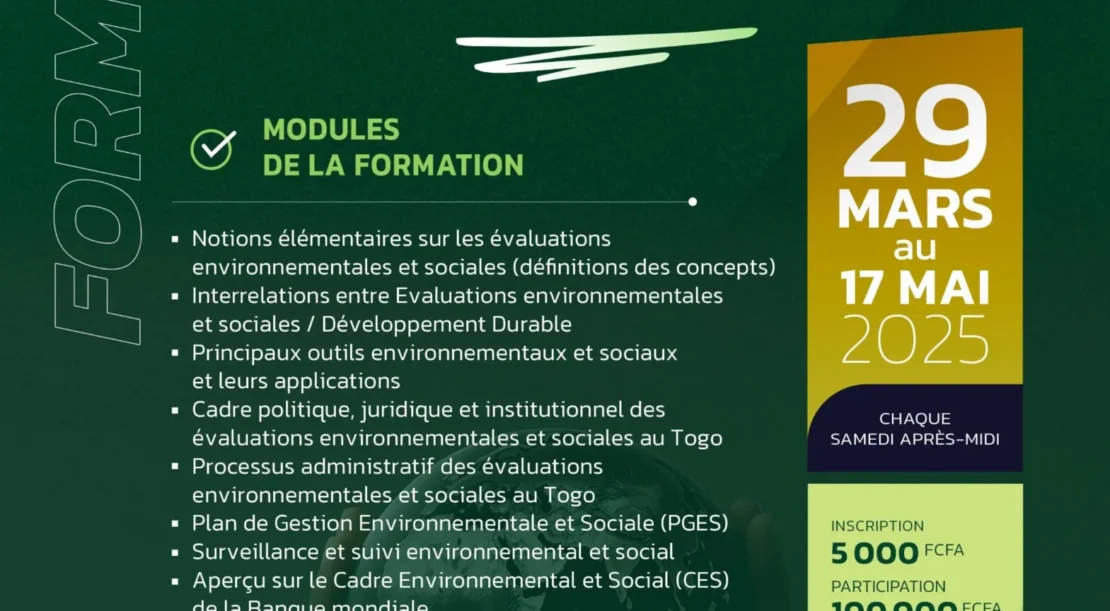 Vue(s): 1 182 Formation en sauvegardes environnementales et sociales appliquées aux projets/programmes de développement Début de la formation 29 mars 2024 (En Présentiel et en ligne) Le Centre de formation Professionnelle SENIORES-FORMATION, Arrêté N° 2024/019/ MEPST/MET/CAB/SE-CCCS organise du 29 mars au 17 mai 2024 sa cinquième session de formation théorique et pratique en sauvegardes environnementales et sociales appliquées aux projets/programmes de développement. Profil du formateur Consultant-formateur en sauvegardes environnementales et sociales Gestionnaire de projet de développement 17 ans d’expériences professionnelles en évaluations environnementales et Sociales, en élaboration de Plan d’Action de Réinstallation (PAR), en gestion des risques sociaux et en gestion des mécanismes des plaintes Contexte et justification Les projets de développement peuvent avoir des impacts significatifs sur l’environnement et les communautés locales. Les sauvegardes environnementales et sociales sont essentielles pour minimiser ces impacts et assurer que les bénéfices des projets soient durables et équitables. Les sauvegardes environnementales et sociales jouent un rôle crucial dans les projets de développement contemporains pour plusieurs raisons : Protection de l’Environnement (Préservation des Écosystèmes, Réduction de la Pollution) Bien-être des Communautés (Protection des Droits Humains, Réinstallation involontaire des populations affectées et compensation adéquate et la restauration des moyens de subsistance, protection de la santé et … Lire la suite de Formation en sauvegardes environnementales et sociales appliquées aux projets/programmes de développement