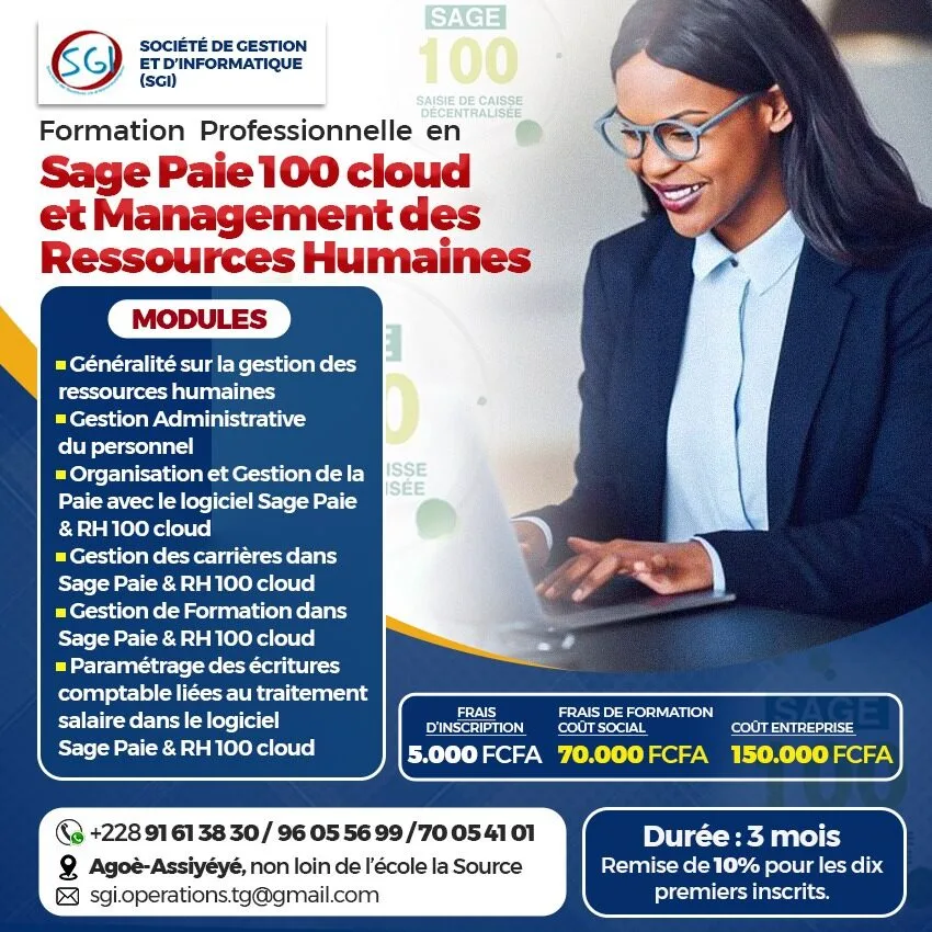 📍 Lieu : Agoè Assiyéyé (à côté de l’école LA SOURCE), au siège de la Société de Gestion et d’Informatique (SGI)