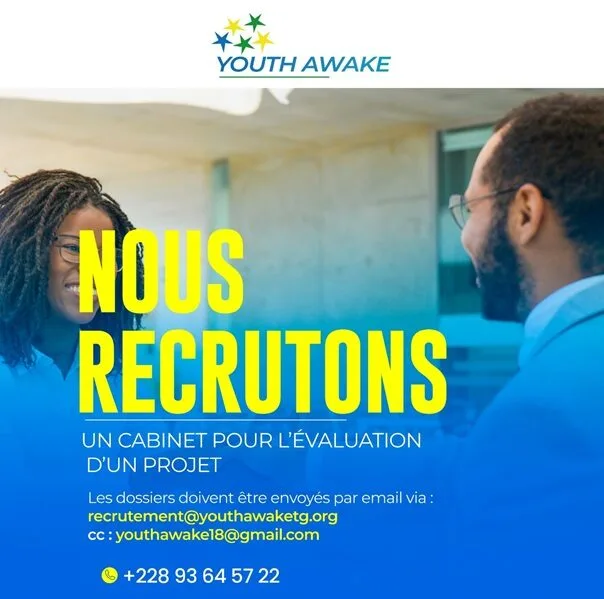 Les offres doivent être envoyées par e-mail à : recrutement@youthawaketg.org et en copie :youthawake18@gmail.com